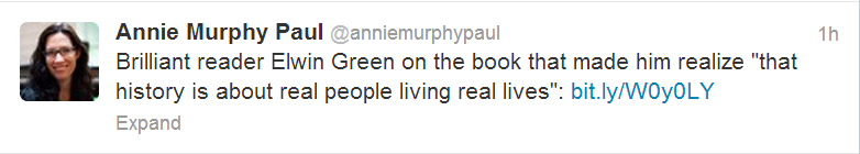 This delighted me in a couple of ways. First, I don't remember ever seeing a blog owner tweet a user's comment before. In doing that, Ms. Paul told her 24,510 followers that she thinks that my comment is worth reading. Second, I love the way that using the name of her blog to describe readers plays as a compliment to them: "Brilliant reader..." Even if it's something of a joke, it's fun.